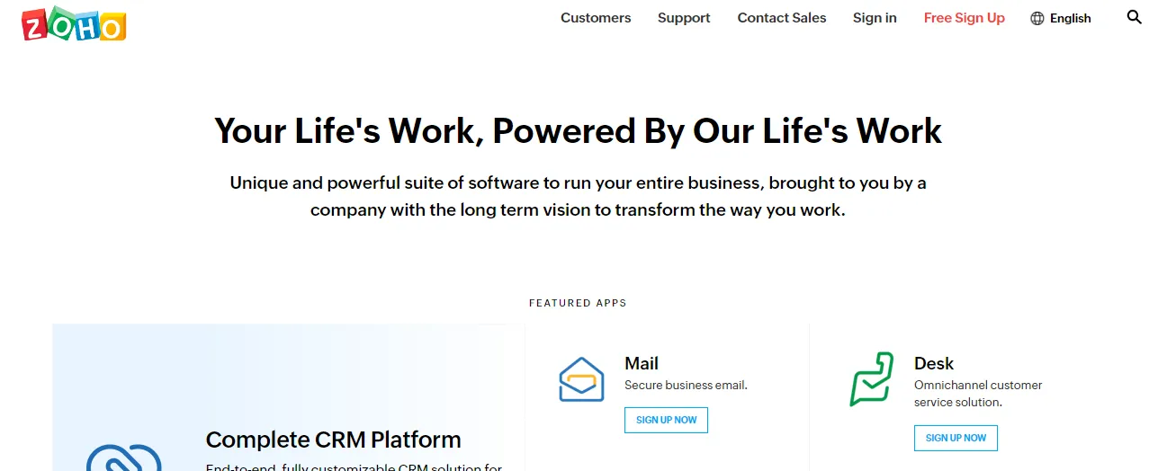 Zoho CRM is a comprehensive CRM software option that is suitable for businesses of all sizes.