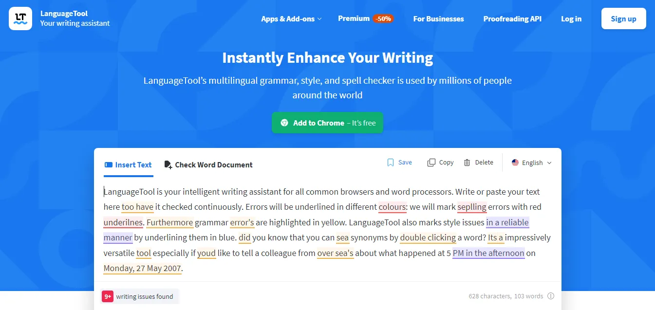 - LanguageTool is free to use and supports a wide range of languages.